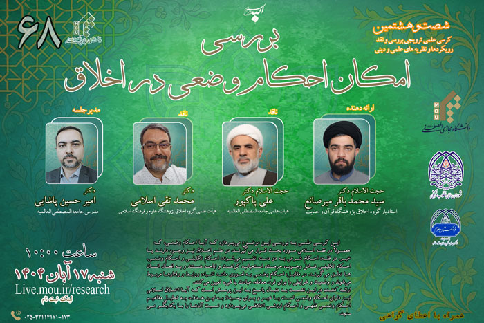 شصت و هشتمین کرسی علمی ترویجی با عنوان: بررسی امکان احکام وضعی در اخلاق
