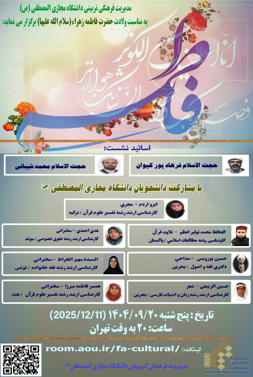 📌مدیریت فرهنگی تربیتی دانشگاه مجازی المصطفی(ص) به مناسبت ولادت باسعادت حضرت فاطمه زهراء(سلام الله علیها) برگزار می نمايد: