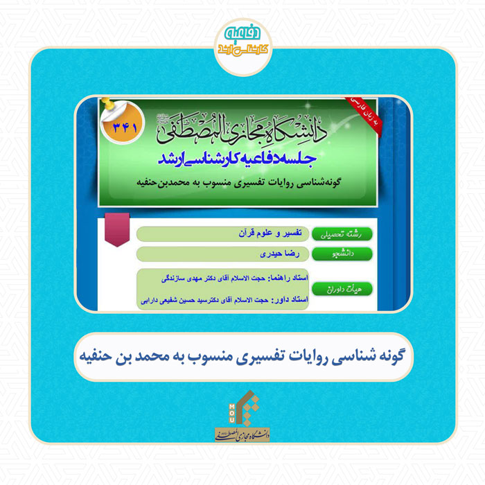 جلسه دفاع از پایان‌نامه کارشناسی ارشد با عنوان: گونه‌شناسی روایات تفسیری منسوب به محمدبن‌حنفیه