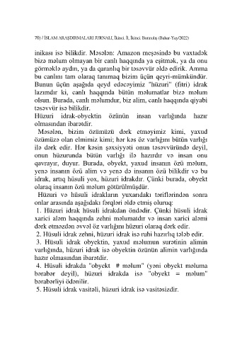 70) / İSLAM ARAŞDIRMALARI JURNALI, İkinci. İl, İkinci. Buraxılış (Bahar-Yay/2022)