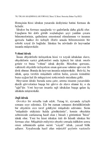 74) / İSLAM ARAŞDIRMALARI JURNALI, İkinci. İl, İkinci. Buraxılış (Bahar-Yay/2022)