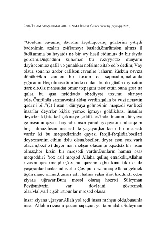 270) / İSLAM ARAŞDIRMALARI JURNALI, İkinci il, Üçüncü buraxılış (payız-qış /2023)