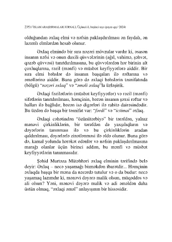 235) / İSLAM ARAŞDIRMALARI JURNALI, Üçüncü il, beşinci sayı (payız-qış / 2024)