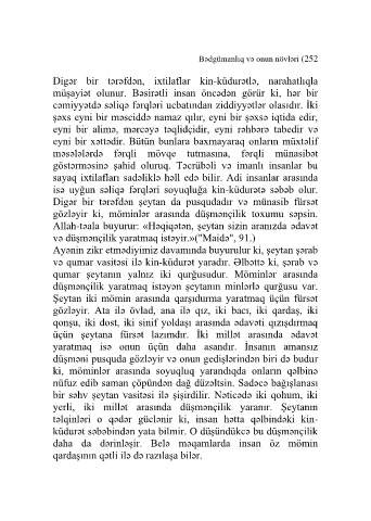 və düşmənçilik yaratmaq istəyir.»("Maidə", 91.)