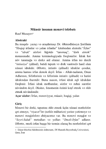 Açar sözlər: İrfan, mənəviyyat, müasir, həqiqi, yalan
