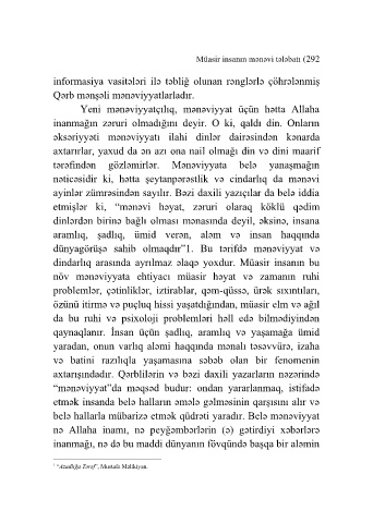 növ mənəviyyata ehtiyacı müasir həyat və zamanın ruhi