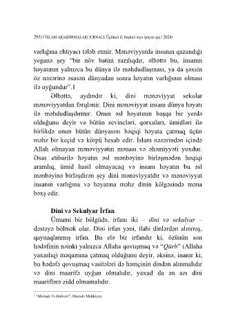 293) / İSLAM ARAŞDIRMALARI JURNALI, Üçüncü il, beşinci sayı (payız-qış / 2024)