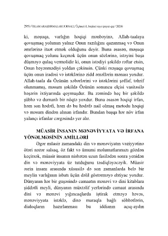 295) / İSLAM ARAŞDIRMALARI JURNALI, Üçüncü il, beşinci sayı (payız-qış / 2024)
