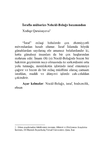 Açar kəlmələr: Nəcül-Bəlağə, israf, bədxərclik,