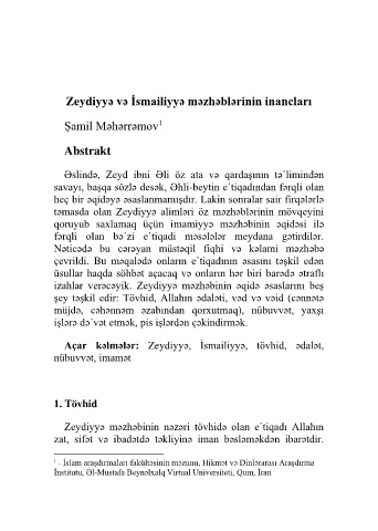 Açar kəlmələr: Zeydiyyə, İsmailiyyə, tövhid, ədalət,