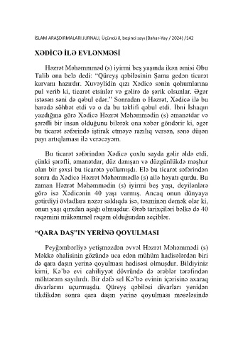 İSLAM ARAŞDIRMALARI JURNALI, Üçüncü il, beşinci sayı (Bahar-Yay / 2024) /142