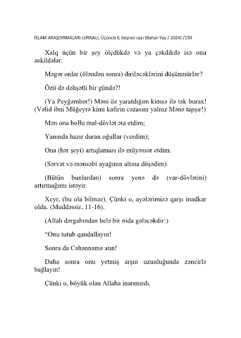 İSLAM ARAŞDIRMALARI JURNALI, Üçüncü il, beşinci sayı (Bahar-Yay / 2024) /150