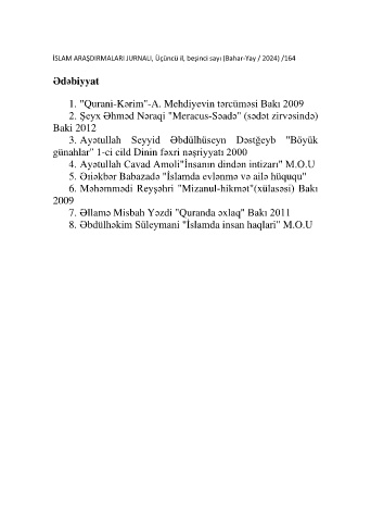 İSLAM ARAŞDIRMALARI JURNALI, Üçüncü il, beşinci sayı (Bahar-Yay / 2024) /164
