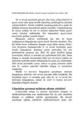 İSLAM ARAŞDIRMALARI JURNALI, Üçüncü il, beşinci sayı (Bahar-Yay / 2024) / 168