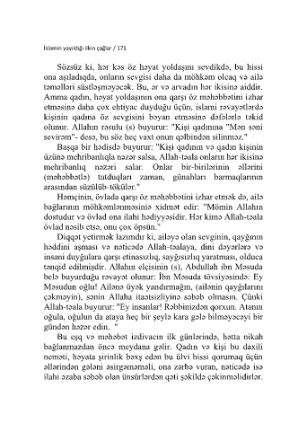 Başqa bir hədisdə buyurur: "Kişi qadının və qadın kişinin