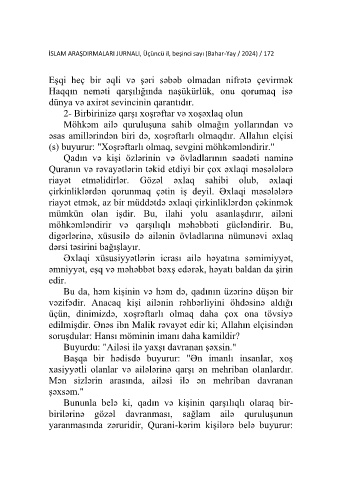 İSLAM ARAŞDIRMALARI JURNALI, Üçüncü il, beşinci sayı (Bahar-Yay / 2024) / 172