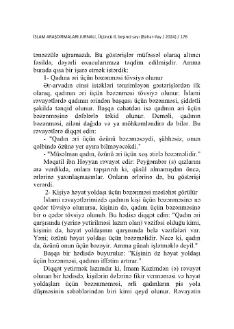 İSLAM ARAŞDIRMALARI JURNALI, Üçüncü il, beşinci sayı (Bahar-Yay / 2024) / 176