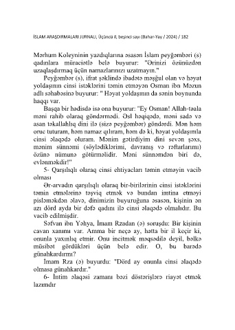 İSLAM ARAŞDIRMALARI JURNALI, Üçüncü il, beşinci sayı (Bahar-Yay / 2024) / 182