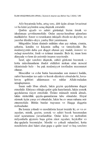 İSLAM ARAŞDIRMALARI JURNALI, Üçüncü il, beşinci sayı (Bahar-Yay / 2024) / 190