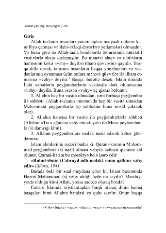 «vəhy» deyilir. Buna əsasən «vəhy» üç qismə bölünür: