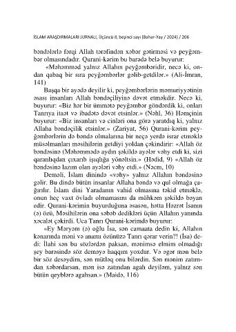 İSLAM ARAŞDIRMALARI JURNALI, Üçüncü il, beşinci sayı (Bahar-Yay / 2024) / 206
