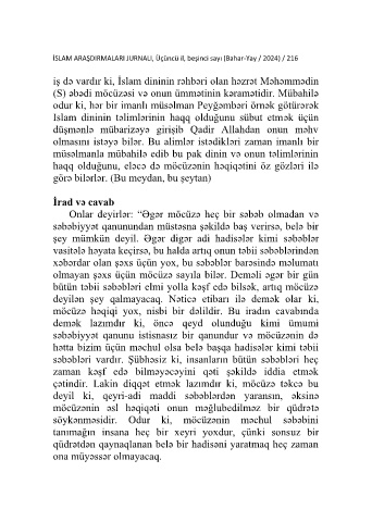 İSLAM ARAŞDIRMALARI JURNALI, Üçüncü il, beşinci sayı (Bahar-Yay / 2024) / 216