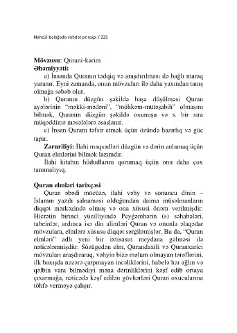 mövzulara, elmlərə xüsusu diqqət sərgiləmişlər. Bu da, “Quran