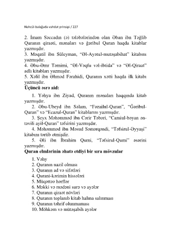 Nəhcül-bəlağədə vəhdət prinsipi / 227