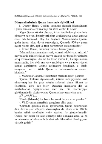 İSLAM ARAŞDIRMALARI JURNALI, Üçüncü il, beşinci sayı (Bahar-Yay / 2024) / 230