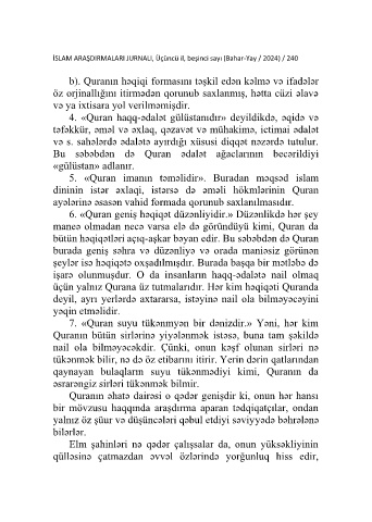 İSLAM ARAŞDIRMALARI JURNALI, Üçüncü il, beşinci sayı (Bahar-Yay / 2024) / 240