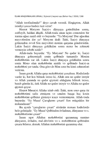 İSLAM ARAŞDIRMALARI JURNALI, Üçüncü il, beşinci sayı (Bahar-Yay / 2024) / 268