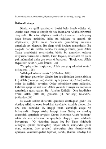 İSLAM ARAŞDIRMALARI JURNALI, Üçüncü il, beşinci sayı (Bahar-Yay / 2024) / 272