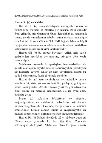 İSLAM ARAŞDIRMALARI JURNALI, Üçüncü il, beşinci sayı (Bahar-Yay / 2024) / 280