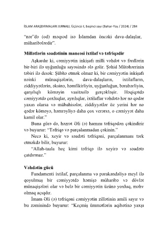İSLAM ARAŞDIRMALARI JURNALI, Üçüncü il, beşinci sayı (Bahar-Yay / 2024) / 284