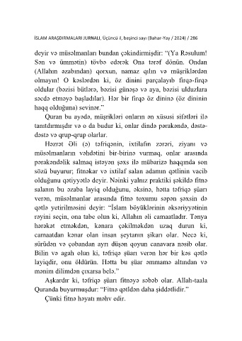 İSLAM ARAŞDIRMALARI JURNALI, Üçüncü il, beşinci sayı (Bahar-Yay / 2024) / 286