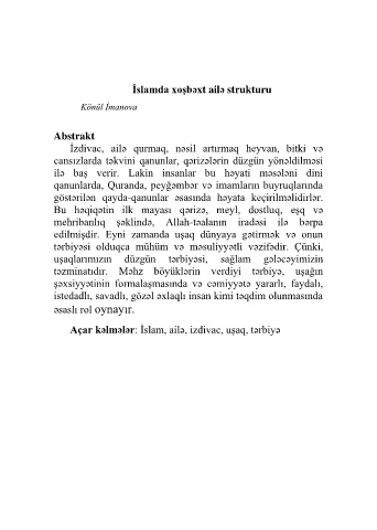 Açar kəlmələr: İslam, ailə, izdivac, uşaq, tərbiyə