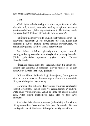 İSLAM ARAŞDIRMALARI JURNALI, Üçüncü il, beşinci sayı (Bahar-Yay / 2024) / 292