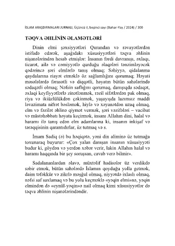 İSLAM ARAŞDIRMALARI JURNALI, Üçüncü il, beşinci sayı (Bahar-Yay / 2024) / 300