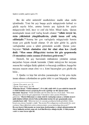 qüdrətindən istifadə edərək Səba məlikəsinin taxtını bir göz qırpımında onun