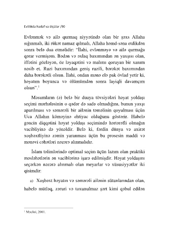 sonra belə dua etməlidir: “İlahi, evlənməyə və ailə qurmağa