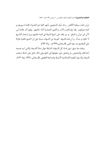 .) 126 ، ج 6 : 1438 ،يناحبسلا . ( يقيقحلا اهدادتماو ةليصمأا ةيملاسلإ ا ةديقعلا ديلو هنأو ،ةعيشلا