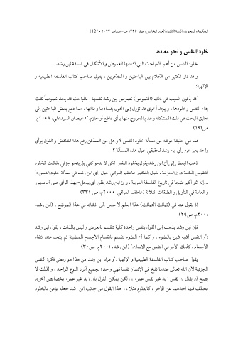.دشر نبا ةفسلف يف لاكشمأا و ضومغلا اهفنتكا يتلا ثحابملا مهأ نم سفنلا دولخ