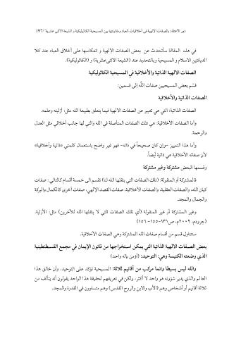 197 ي ة / رشع ى نثلاا ي ةع شلا و ةيكيلوثاكلا ي ح ي ة سملا ي ن ب اهتنراقمو دابعلا تا ي قلاخأ ي ة ف ى هللإا تافصلاب داقتعلاا رود