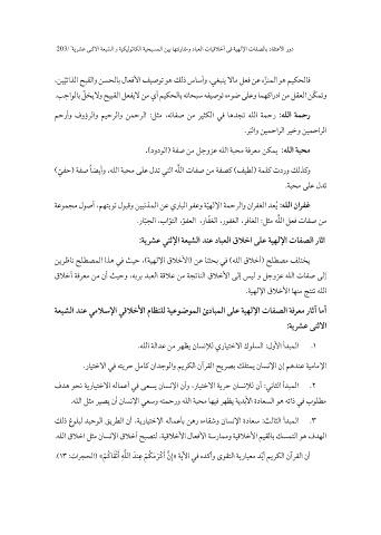 203 ي ة / رشع ى نثلاا ي ةع شلا و ةيكيلوثاكلا ي ح ي ة سملا ي ن ب اهتنراقمو دابعلا تا ي قلاخأ ي ة ف ى هللإا تافصلاب داقتعلاا رود