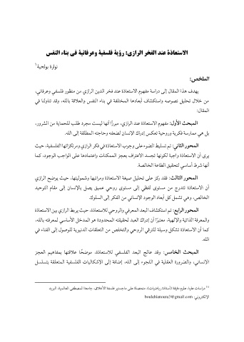 ،ينافرعو يفسلف روينم نم يزارلا نيدلا رخف دنع ةذاعتسلاا موهفم ةسارد ىلإ لاقملا اذه فدهي