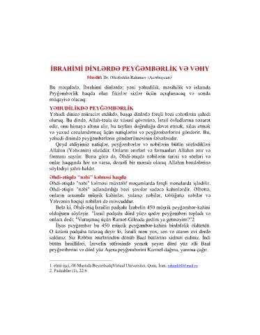 İBRAHİMİ DİNLƏRDƏ PEYĞƏMBƏRLİK VƏ VƏHY