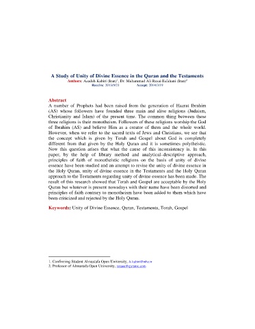Keywords: Unity of Divine Essence, Quran, Testaments, Torah, Gospel