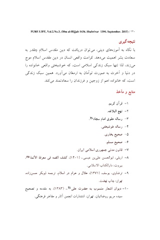 PURE LIFE, Vol.2.No.3, (Dhu al-Hijjah 1436. Shahrivar 1394. September. 2015 / ( 120