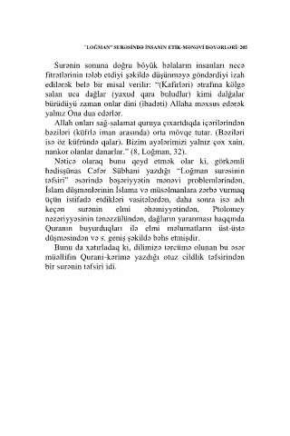“LOĞMAN” SURƏSİNDƏ İNSANIN ETİK-MƏNƏVİ DƏYƏRLƏRİ/ 205