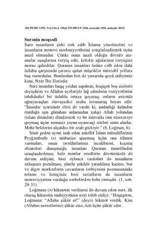202 /PURE LIFE, Vol.2.No.3, (Dhul ZİLHİCCE 1436, sentyabr 1394. sentyabr 2015)